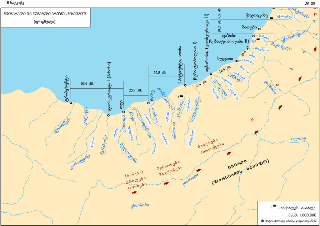 როგორც ცნობილია, V საუკუნის ანონიმმა ავტორმა არიანეს ცნობების ზუსტი გამეორებით გამოსცა თავისი ნაშრომი, მასში განმარტებულია მდინარეთა და პუნქტთა იმჟამინდელი სახელები.
