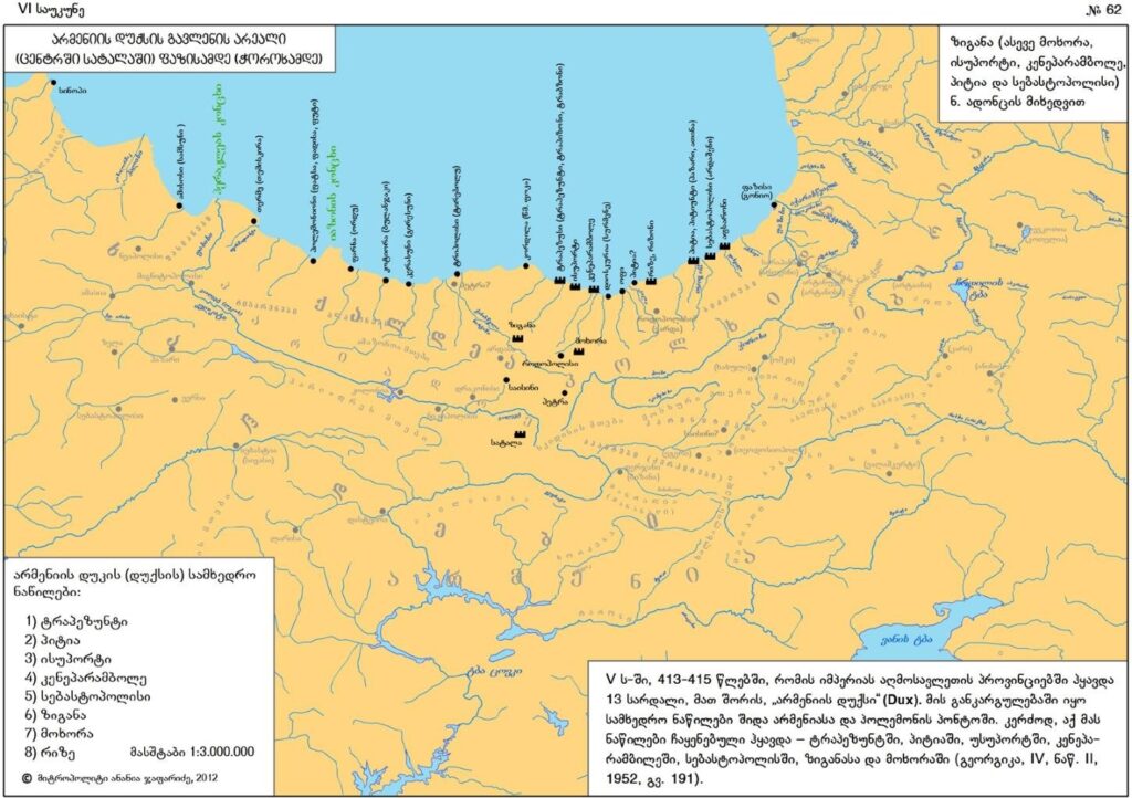 კიდევ ერთხელ ვაჩვენოთ რუკა, რომელზეც არმენიის დუქსის სამხედრო ნაწილების განლაგებაა მოცემული, აქაა წმ. ძმების განსასვენებელი პიტია ანუ პიტიუნტი ოფ-რიზესან ახლოს, ისუპორტი, ლაზიკის სებასტოპოლისი და სხვა .